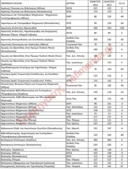 Ακολουθούν οι πίνακες που επιμελήθηκε ο κ. Στρατηγάκης για τους εισακτέους των Πανελλήνιων εξετάσεων του 2022 και του 2021: