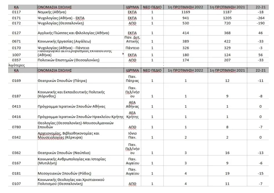 Σύμφωνα με τον κ. Στρατηγάκη, το «εμπόδιο» της ΕΒΕ «μείωσε τις πρώτες προτιμήσεις αρκετών σχολών τα δύο τελευταία χρόνια. Μπορούμε όμως, σε κάθε περίπτωση, να εξετάσουμε τις δημοφιλέστερες σχολές το 2022 και να συγκρίνουμε τις πρώτες προτιμήσεις των υποψηφίων με το 2021. Και τις δύο χρονιές υπήρχε η ΕΒΕ, οπότε δεν υπάρχει κάποιο πρόβλημα στη σύγκριση».