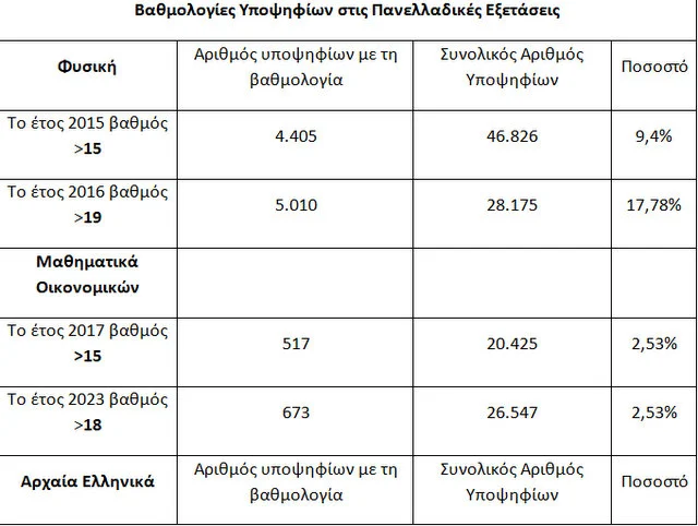 Ακόμη και το ίδιο το 19 δεν έχει την ίδια αξία, από χρονιά σε χρονιά. Στα Αρχαία Ελληνικά έγραψαν πάνω από 19 το 2022 μόλις 65 υποψήφιοι. Την επόμενη χρονιά, το 2023, 262 υποψήφιοι έγραψαν πάνω από 19. Είναι προφανές ότι το 19 του 2022 είχε μεγαλύτερη αξία από το 19 του 2023