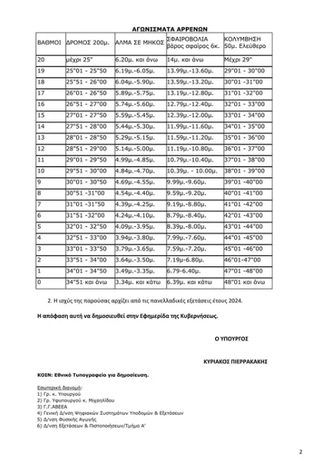 Με τη συγκεκριμένη ΥΑ, αντικαθίσταται το αγώνισμα του Δρόμου 400μ. με το αγώνισμα του Δρόμου 200μ. για τα αγόρια που συμμετέχουν στις πρακτικές δοκιμασίες προκειμένου να εισαχθούν στα Τμήματα Επιστήμης Φυσικής Αγωγής και Αθλητισμού. Η εν λόγω απόφαση έχει σταλεί στο Εθνικό Τυπογραφείο προς δημοσίευση.