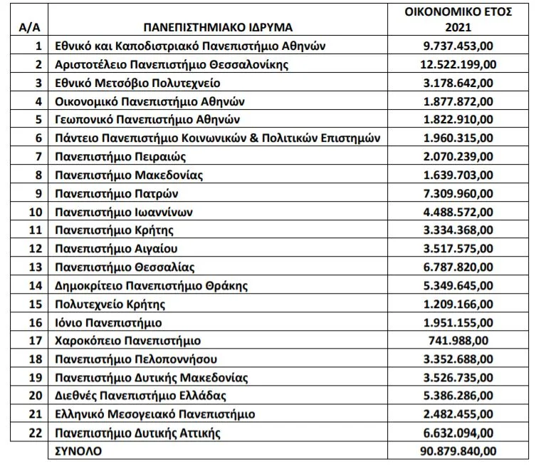 Πανεπιστήμια: Κονδύλι 91 εκατομμύρια για λειτουργικές δαπάνες