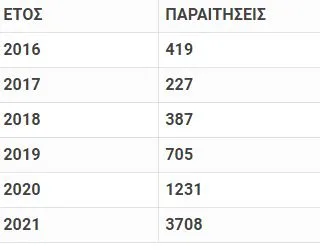Από τα παραπάνω στοιχεία προκύπτει πολύ σημαντική αύξηση των παραιτήσεων σε σχέση με προηγούμενες χρονιές. Ενδεικτικά: