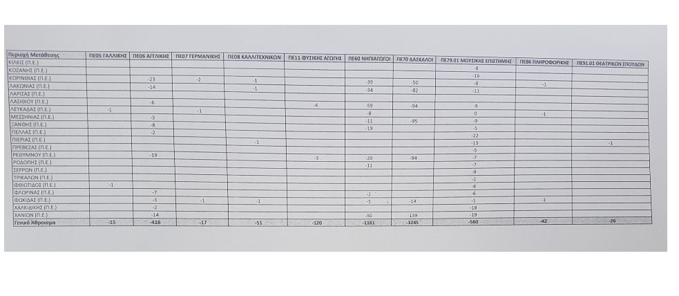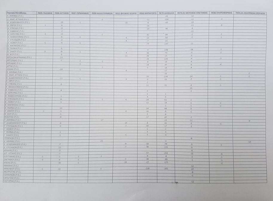 Για ενημέρωσή σας αλλά πάνω απ’ όλα για λόγους Διαφάνειας σας κοινοποιώ αναλυτικά ανά ειδικότητα και ανά Διεύθυνση Εκπαίδευσης τον πίνακα των οργανικών κενών όλης της χώρας.