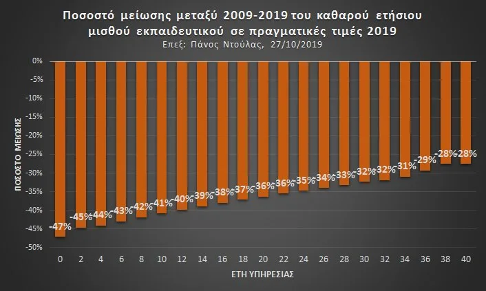 Ποσοστό μείωσης μισθού εκπαιδευτικού 2009-2019 – Αναλυτικός πίνακας