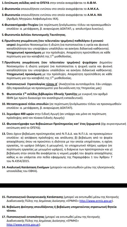 Προσλήψεις αναπληρωτών 2019: Τα 17 δικαιολογητικά πρόσληψης
