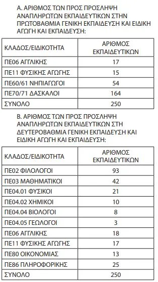 Προσλήψεις αναπληρωτών: 500 προσλήψεις σε σχολεία – Οι ειδικότητες
