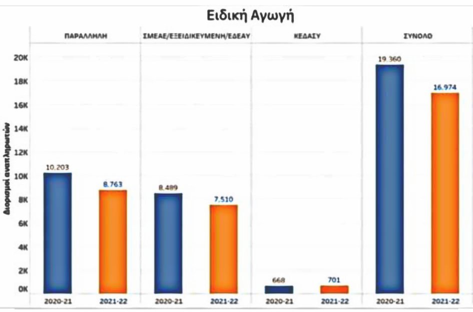Για την ειδική είχαμε φέτος 1440 λιγότερες προσλήψεις στην παράλληλη στήριξη σε σχέση με πέρυσι και συνολικα 2386 σε όλες τις δομές της ειδικής αγωγής.