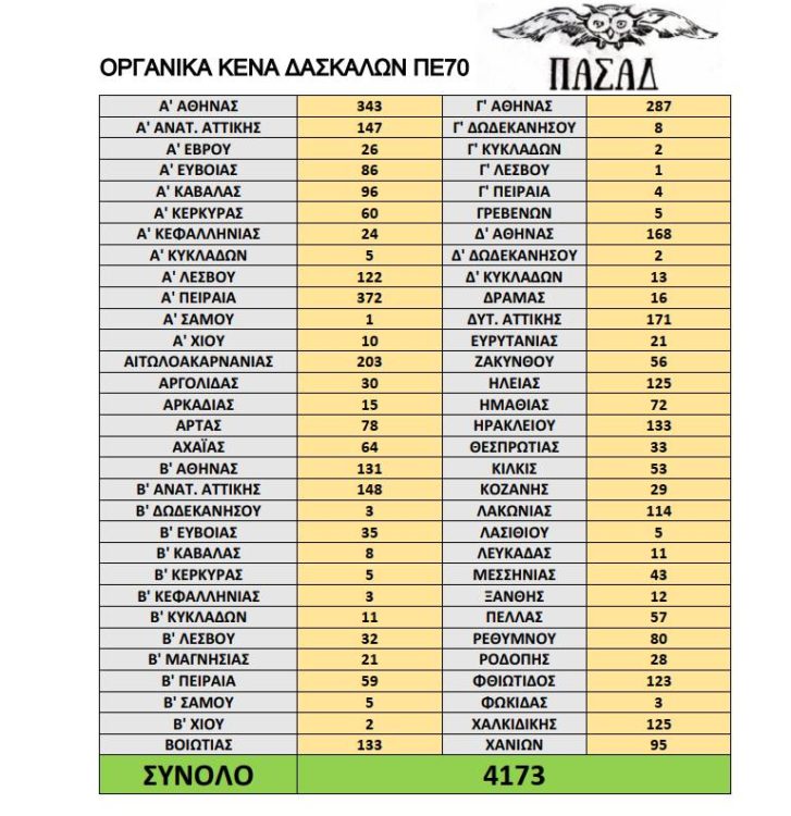 Τα οργανικά κενά των δασκάλων, όπως πρώτοι είχαμε ενημερώσει (έγκυρα) από τις 29/04, είναι 4173.