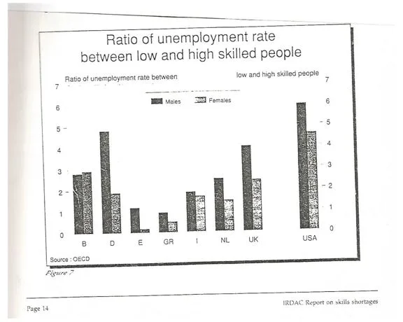 Σύμφωνα με τον οργανισμό IRDAC στο συνημμένο διάγραμμα από το 1992( IRDAC- Industrial Research and Development Advisory Committee of the European Community, 1992 ), το ποσοστό ανεργίας ατόμων χαμηλής εκπαίδευσης ήταν 6 φορές μεγαλύτερο από το ποσοστό ανεργίας ατόμων με υψηλή εκπαίδευση στις ΗΠΑ, γεγονός που σημαίνει ότι το υψηλού ανταγωνιστικού επιπέδου εργασιακό περιβάλλον της χώρας αυτής έχει ανάγκη από εκπαιδευμένα άτομα για να λειτουργήσει, και εκτοπίζει […]