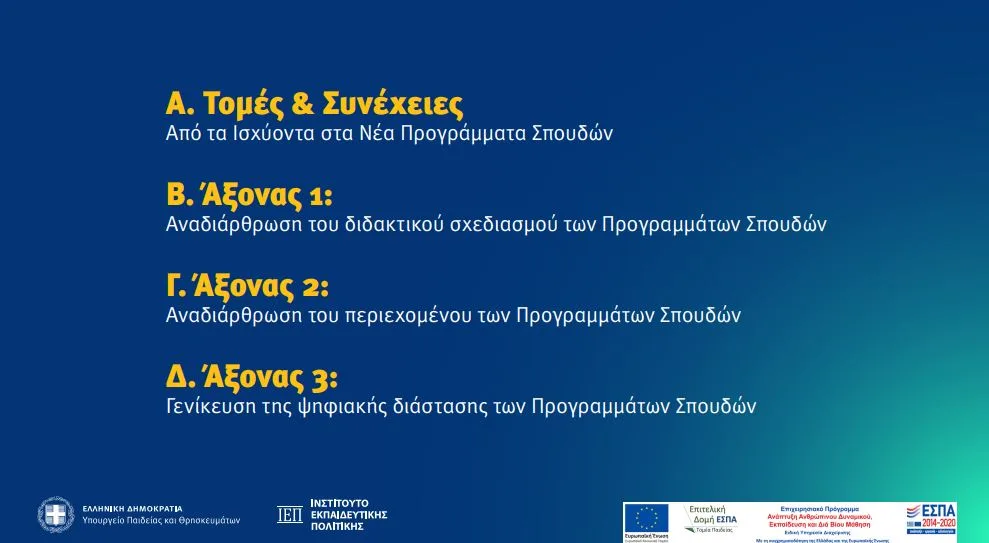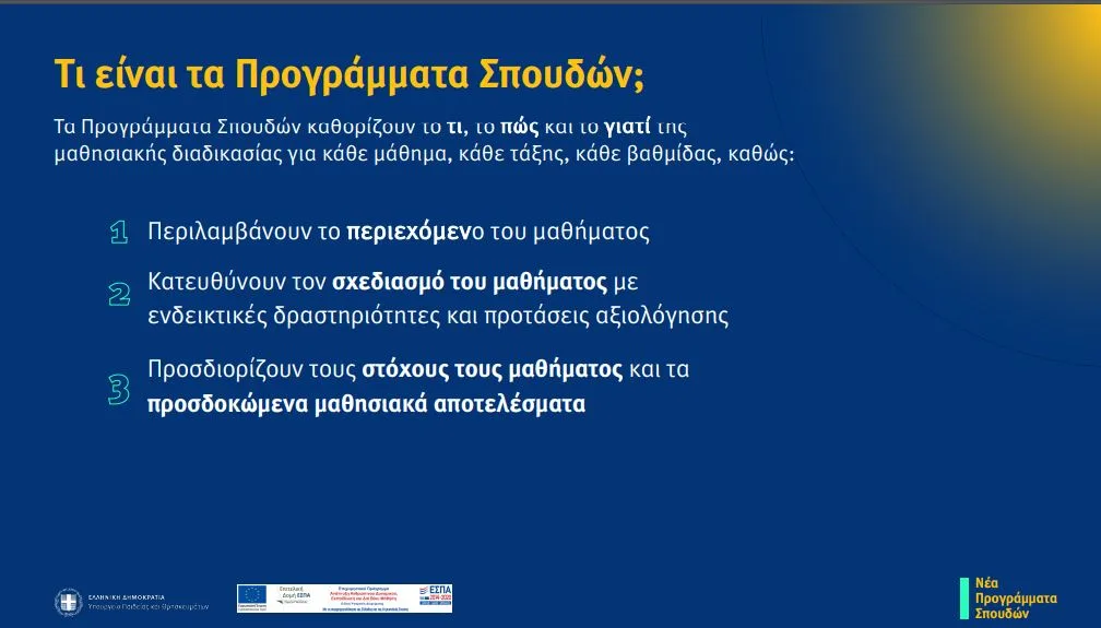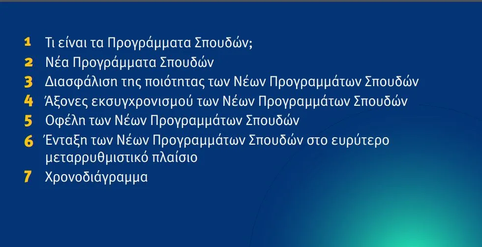 Παρουσίαση της Υπουργού Νίκης Κεραμέως των νέων Προγραμμάτων Σπουδών