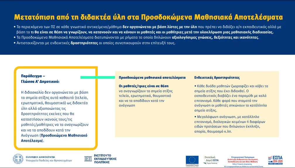 Η ενίσχυση της κριτικής σκέψης των παιδιών είναι ο βασικός στόχος των νέων προγραμμάτων σύμφωνα με το υπουργείο Παιδείας όπως επίσης η καλλιέργεια δεξιοτήτων επιστήμης και τεχνολογίας, ζωής, η ανάπτυξη της ικανότητας των μαθητών να μαθαίνουν πώς να μαθαίνουν, να λαμβάνουν αποφάσεις με βάση τα επιστημονικά δεδομένα, να αναλαμβάνουν πρωτοβουλίες, και να λειτουργούν με αυτοπεποίθηση και ενσυναίσθηση.