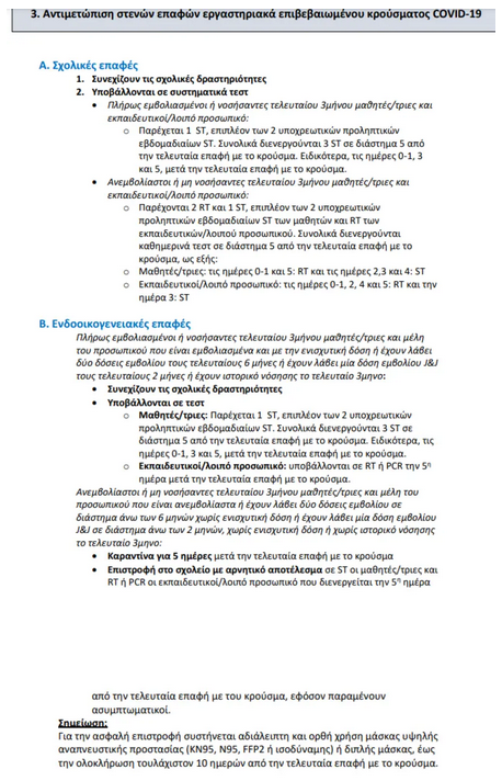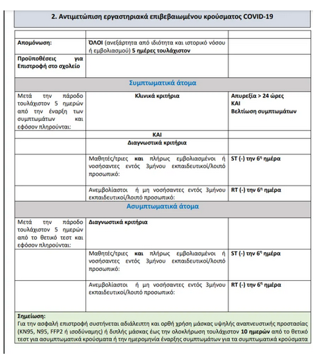 Δείτε αναλυτικά όλα όσα αναφέρουν οι αναλυτικές οδηγίες στην περίπτωση θετικού κρούσματος κορωνοϊού σε σχολεία που έδωσε την Τρίτη ο ΕΟΔΥ.