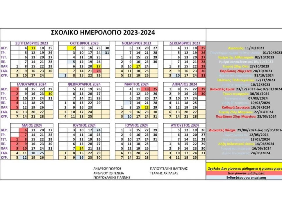 Δείτε το σχολικό ημερολόγιο: