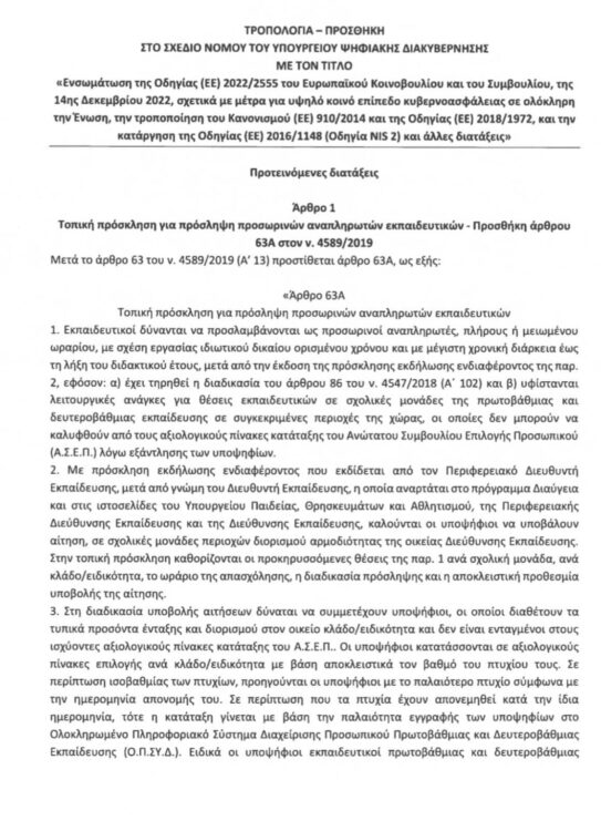 Η συγκεκριμένη τροπολογία αφορά σχολεία που δεν υπάρχει ενδιαφέρον για την κάλυψη κενών από εκπαιδευτικούς. ΝΕΑ τροπολογία δίνει τη δυνατότητα στους Περιφερειακούς Διευθυντές να εκδίδουν πρόκληση εκδήλωσης ενδιαφέροντος εφόσον υφίστανται λειτουργικές ανάγκες για θέσεις εκπαιδευτικών σε σχολεία της πρωτοβάθμιας και δευτεροβάθμιας εκπαίδευσης