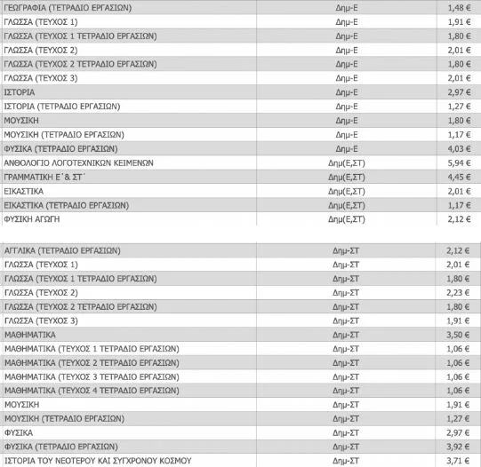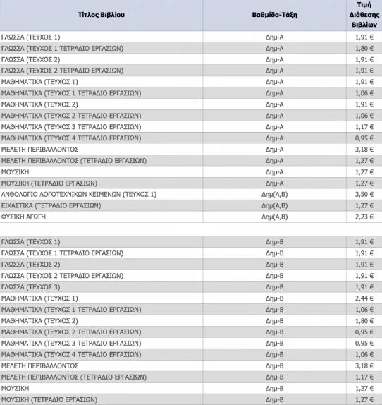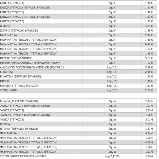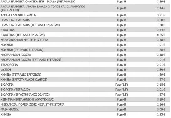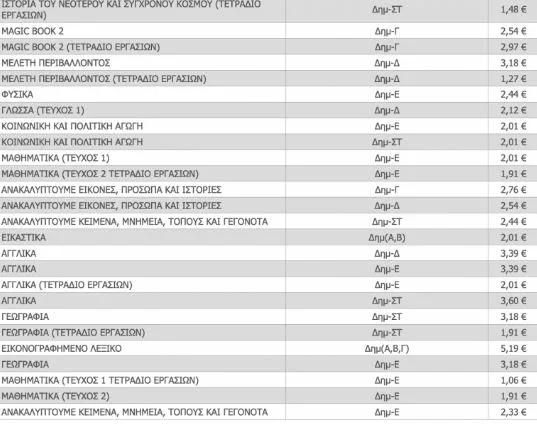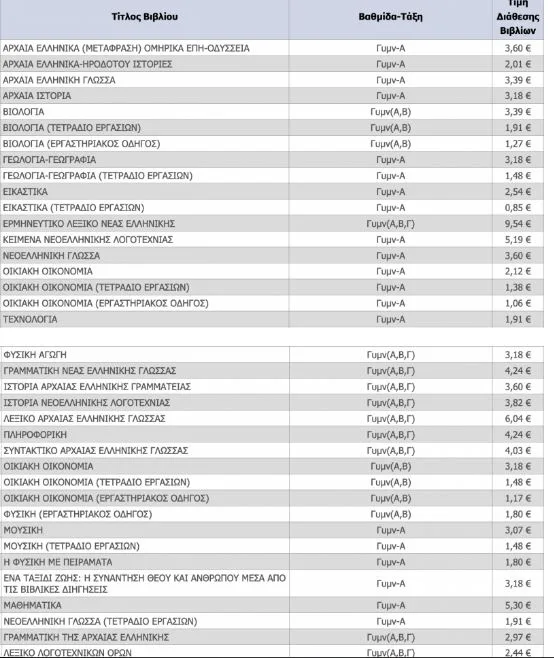 Σχολικά βιβλία: Ο τιμοκατάλογος των βιβλίων Δημοτικού, Γυμνασίου και Λυκείου