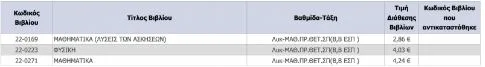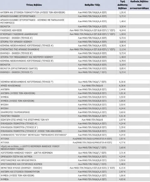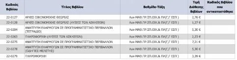 Ο τιμοκατάλογος των σχολικών βιβλίων των Δημοτικού, Γυμνασίου και Λυκείου, για το σχολικό έτος 2022-23.