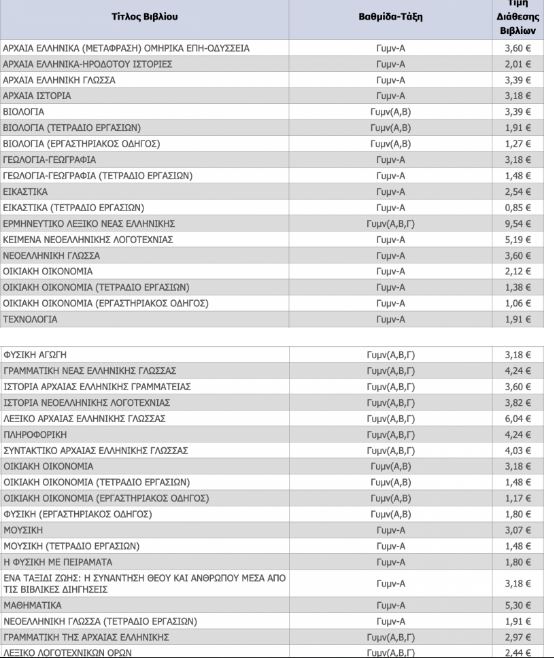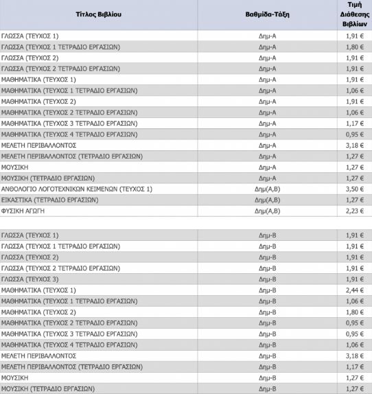 Ο τιμοκατάλογος των σχολικών βιβλίων των Δημοτικού, Γυμνασίου και Λυκείου, για το σχολικό έτος 2022-23.