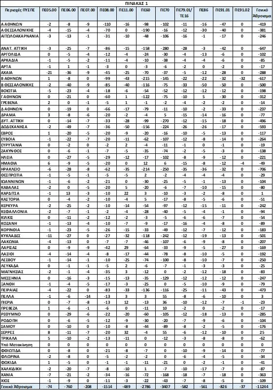 Σύμφωνα με ενημέρωση, τα λειτουργικά κενά Γενικής Αγωγής με τα οποία θα πραγματοποιηθούν οι αποσπάσεις από Νομό σε Νομό για το Σχολικό Έτος 2020-2021 ανά περιοχή και ειδικότητα είναι τα παρακάτω: