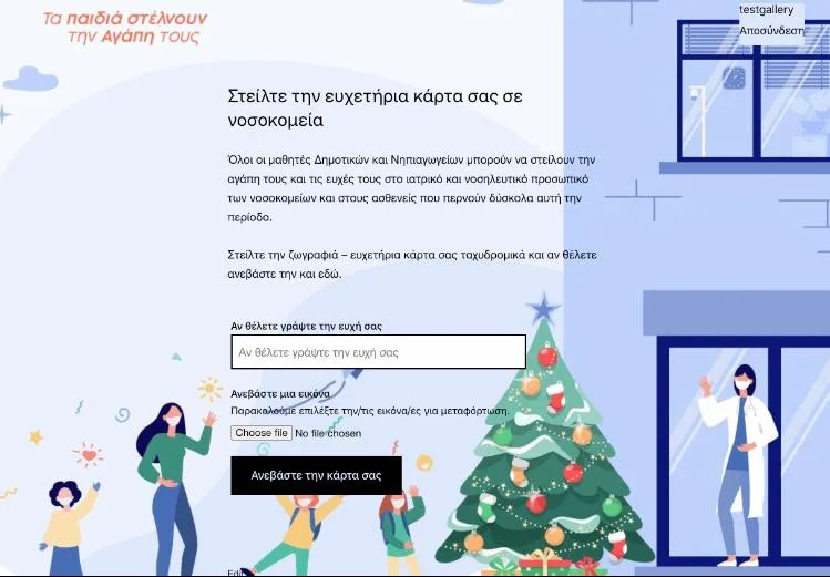 Η δράση αφορά στην παρότρυνση των μαθητών και μαθητριών Νηπιαγωγείων και Δημοτικών της χώρας να φιλοτεχνήσουν εορταστικές ευχετήριες κάρτες/ζωγραφιές, με φυσικό ή ψηφιακό τρόπο, οι οποίες θα αποσταλούν με δύο μεθόδους: είτε με φυσική αποστολή, μέσω ΕΛΤΑ, στα νοσοκομεία όλης της χώρας, είτε με ανάρτηση σε ειδική εφαρμογή που έχει διαμορφωθεί στο Πανελλήνιο Σχολικό Δίκτυο, ώστε να αναρτηθούν σε ιστοσελίδα του ΥΠΑΙΘ.