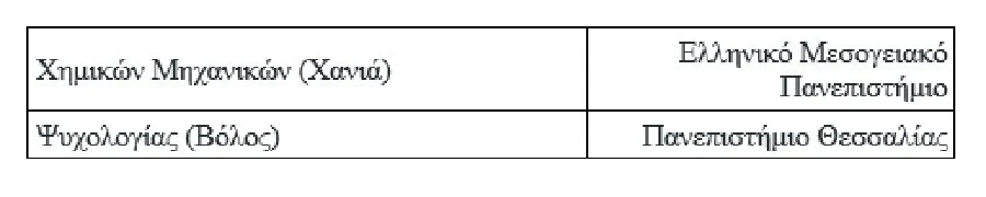 στη συγχώνευση 4 τμημάτων κατόπιν εισήγησης του Πανεπιστημίου Πατρών,