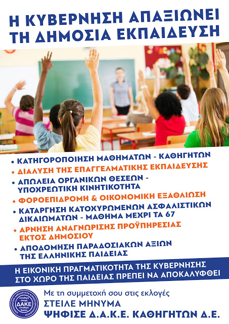 Την Τετάρτη 2/11 οι Ελληνίδες και Έλληνες εκπαιδευτικοί καλούνται να αναδείξουν τους εκπροσώπους τους στα Υπηρεσιακά Συμβούλια. Οι νέοι αιρετοί του κλάδου οφείλουν με σθένος και αγωνιστικότητα να αντισταθούν στη(ν):