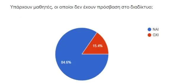 3. Το 85% των σχολείων που απάντησαν δήλωσαν ότι υπάρχουν μαθητές που δεν έχουν καμία πρόσβαση στο διαδίκτυο