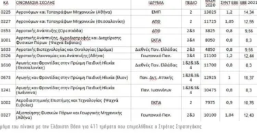 Η Ελάχιστη Βάση Εισαγωγής για 411 τμήματα