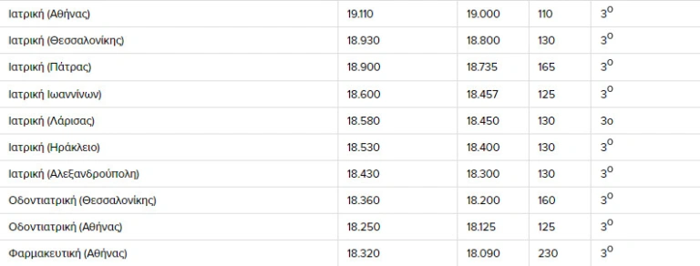 Η μεγάλη έκπληξη της χρονιάς είναι οι Ιατρικές Σχολές, που φλερτάρουν όλες από 18.400 μόρια και πάνω, με αυτή της Αθήνας να εκτιμάται ότι θα αγγίξει τα 19.110 μόρια.