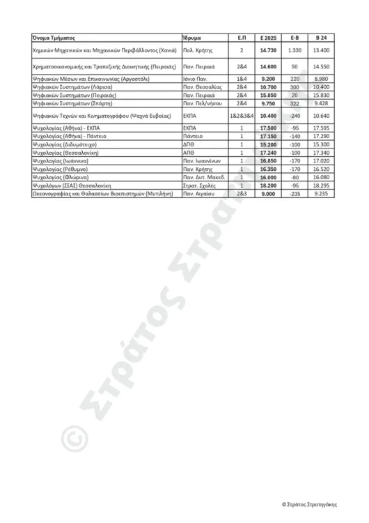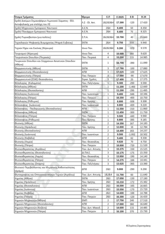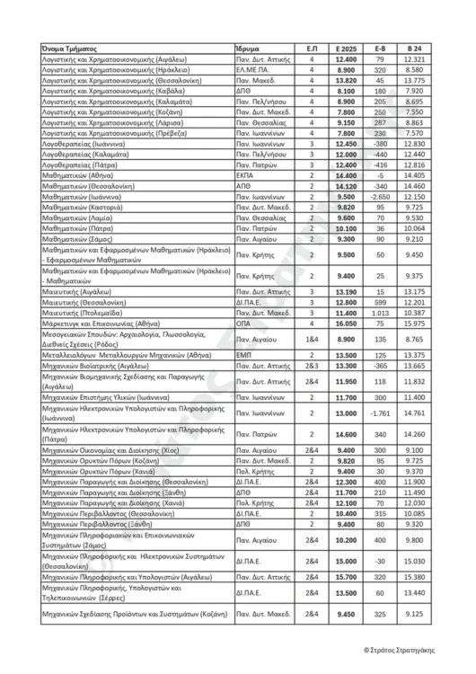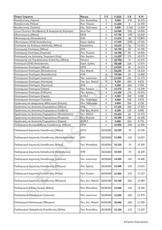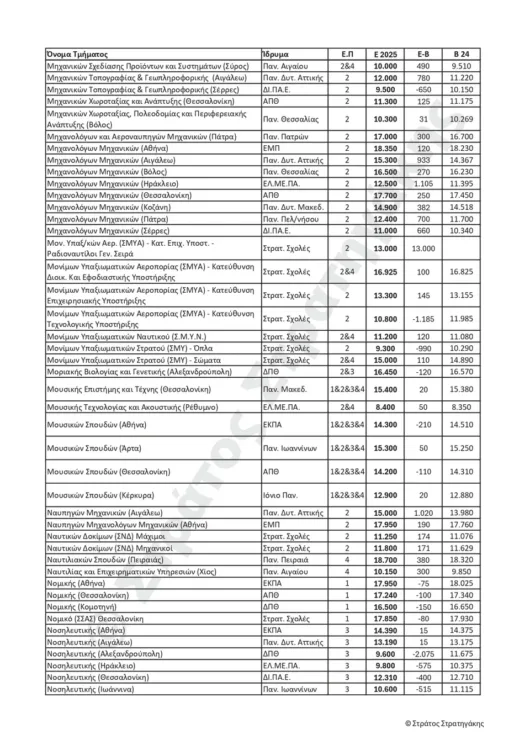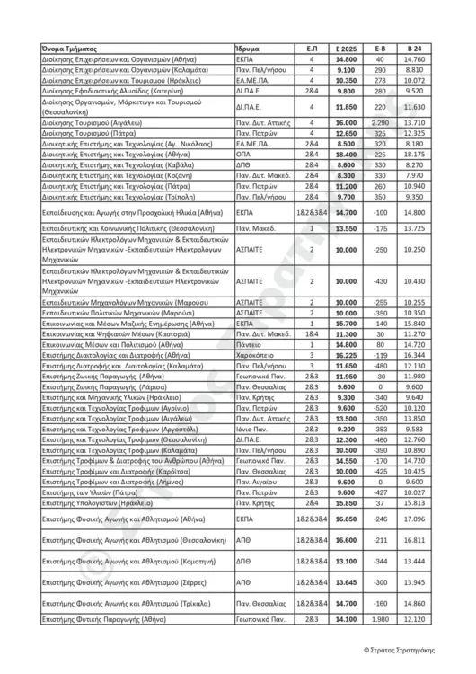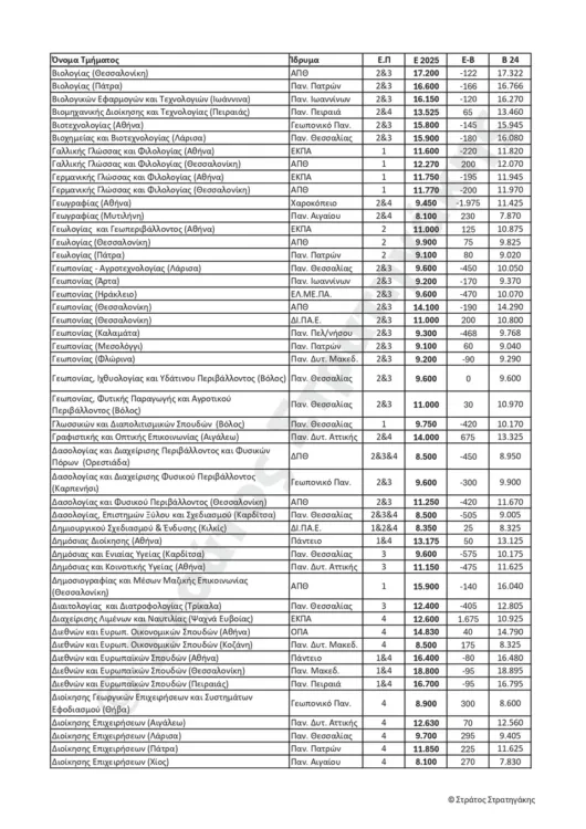 Παρακάτω ακολουθούν οι πίνακες με τις εκτιμήσεις του κ. Στράτου Στρατηγάκη για τις βάσεις εισαγωγής για το 2025, αλλά και το πώς αυτές διαμορφώθηκαν το 2024.