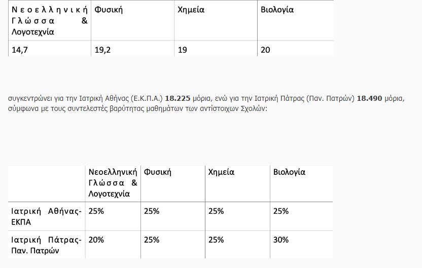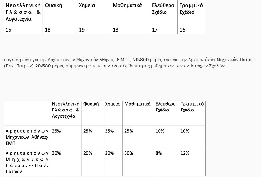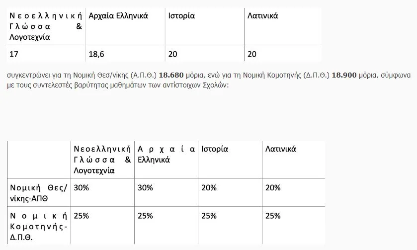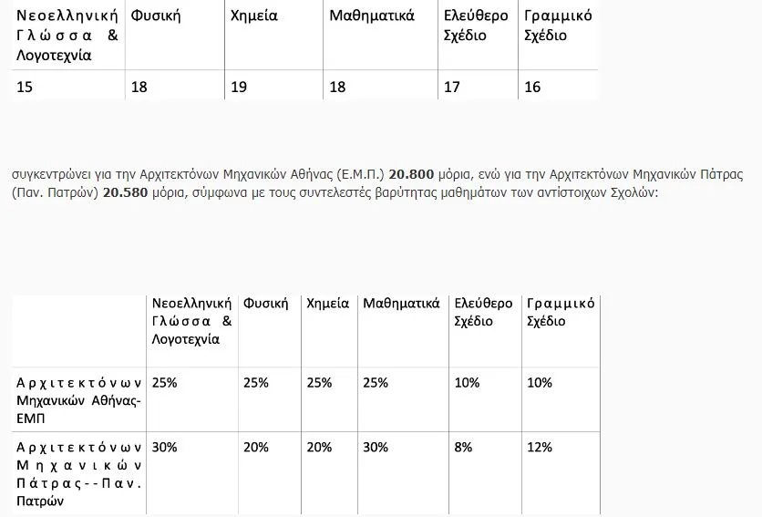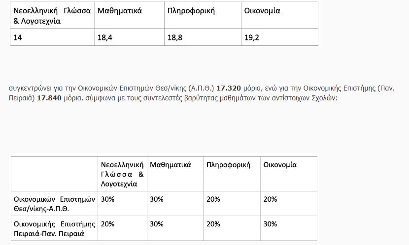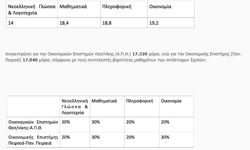 Δεδομένου του γεγονότος ότι οι συντελεστές βαρύτητας μαθημάτων, όπως τέθηκαν από τα Ιδρύματα, σε κάποιες περιπτώσεις διαφέρουν μεταξύ Σχολών, Τμημάτων ή Εισαγωγικών Κατευθύνσεων ιδίου γνωστικού αντικειμένου, ενδέχεται να προκύψουν διαφοροποιήσεις στον υπολογισμό των μορίων των υποψηφίων.