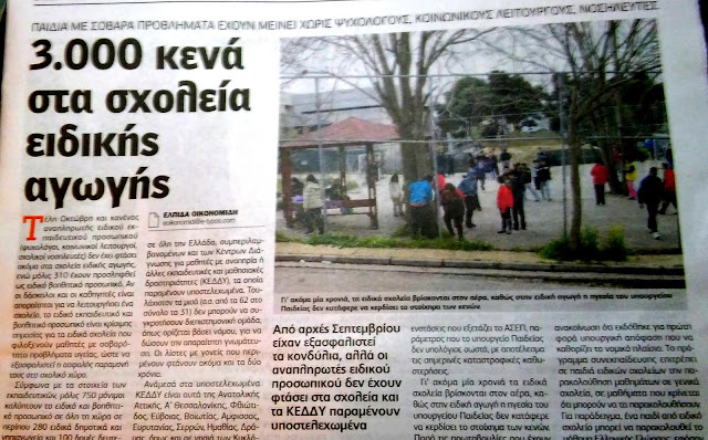 ΧΩΡΙΣ Ε.Ε.Π. ΚΑΙ ΕΛΑΧΙΣΤΟ Ε.Β.Π. ΟΙ ΔΟΜΕΣ ΕΙΔΙΚΗΣ ΑΓΩΓΗΣ…ΡΕΠΟΡΤΑΖ ΣΤΗΝ ΕΦΗΜΕΡΙΔΑ “ΕΛΕΥΘΕΡΟΣ ΤΥΠΟΣ” ΤΟΥ ΣΑΒΒΑΤΟΥ 22/10/2016
