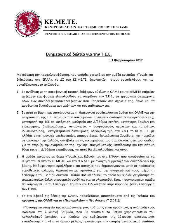 Πρόταση τρόπου διεκδίκησης οργανικών τοποθετήσεων ειδικοτήτων στην πρωτοβάθμια