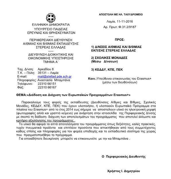 01-03-17 ΠΡΟΣΚΛΗΣΗ ΕΚΔΗΛΩΣΗΣ ΕΝΔΙΑΦΕΡΟΝΤΟΣ ΓΙΑ ΤΗ ΣΥΜΜΕΤΟΧΗ ΣΤΟ ΕΥΡΩΠΑΙΚΟ ΕΡΓΟ Erasmus+ DiCoR (Different people-Common needs. Refugees moving towards a physically active life) Το σχετικό έγγραφο σε μορφή PDF