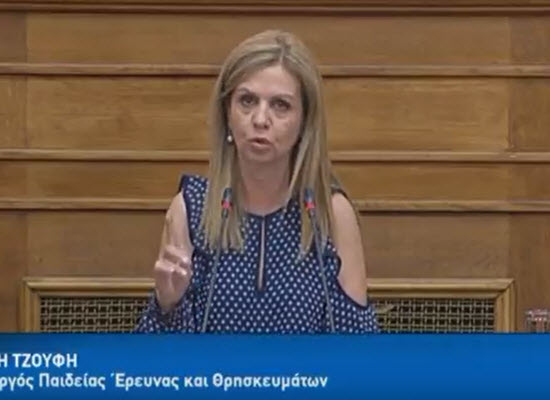 Βουλή: Η Υφυπουργός Παιδείας Μ. Τζούφη για το σύστημα διορισμών