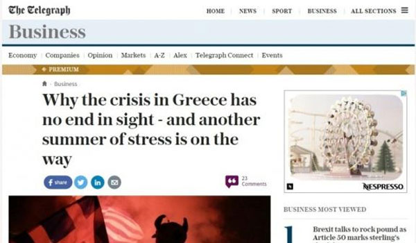 Συνθήκες ανθρωπιστικής κρίσης με την χώρα να επιβιώνει οριακά από «ευρωπαϊκό συσσίτιο», τους πολίτες να σηκώσουν από τις τράπεζες εως 8 ευρώ την ημέρα και τα νοσοκομεία να λειτουργούν οριακά...
