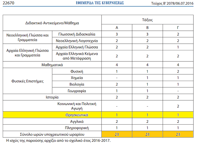 Με απόφαση του Υπουργού Παιδείας Νίκου Φίλη που δημοσιεύτηκε στο ΦΕΚ καθορίστηκε το το ωρολόγιο πρόγραμμα των μαθημάτων των Α΄, Β΄ και Γ΄ τάξεων του Εσπερινού Γυμνασίου που θα ισχύσει...
