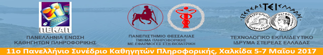 1η Ανακοίνωση 11ου Πανελλήνιου Συνεδρίου Καθηγητών Πληροφορικής Η Π.Ε.ΚΑ.Π. και το Παράρτημα Π.Ε.ΚΑ.Π. Στερεάς Ελλάδας διοργανώνουν σε συνεργασία με το Τμήμα Πληροφορικής με Εφαρμογές στη Βιοϊατρικήμε έδρα τη Λαμία (Πανεπιστήμιο...