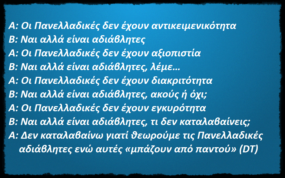 Οι υποστηρικτές της άποψης ότι οι Πανελλαδικές εξετάσεις πρέπει να εξακολουθήσουν να είναι το απόλυτο κριτήριο εισαγωγής των μαθητών στην τριτοβάθμια εκπαίδευση στηρίζουν την επιχειρηματολογία τους κυρίως στο ότι είναι...