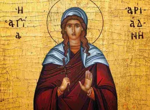 Γιορτάζουμε σήμερα 18 Σεπτεμβρίου, ημέρα μνήμης της Αγίας Αριάδνης… Η Αγία Αριάδνη αν και δούλα, ήταν ανώτερη και λαμπρότερη από πολλές κυρίες, δούλες των κοσμικών ματαιοτήτων και των γήινων μολυσμών....